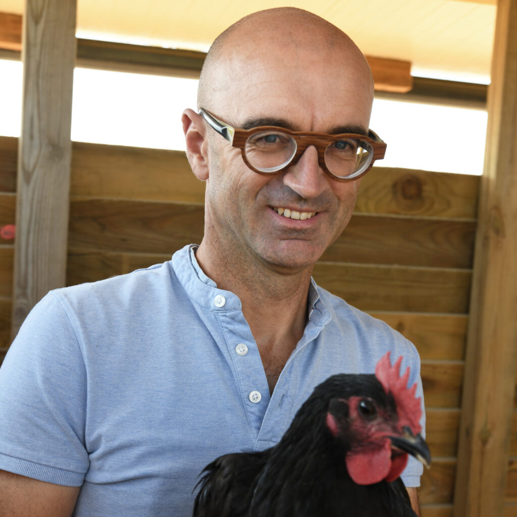Cédric élève des poulets de chair, race cou nu label, adaptée à la vie en extérieur, et des poules noires de Challans, une authentique race fermière locale.